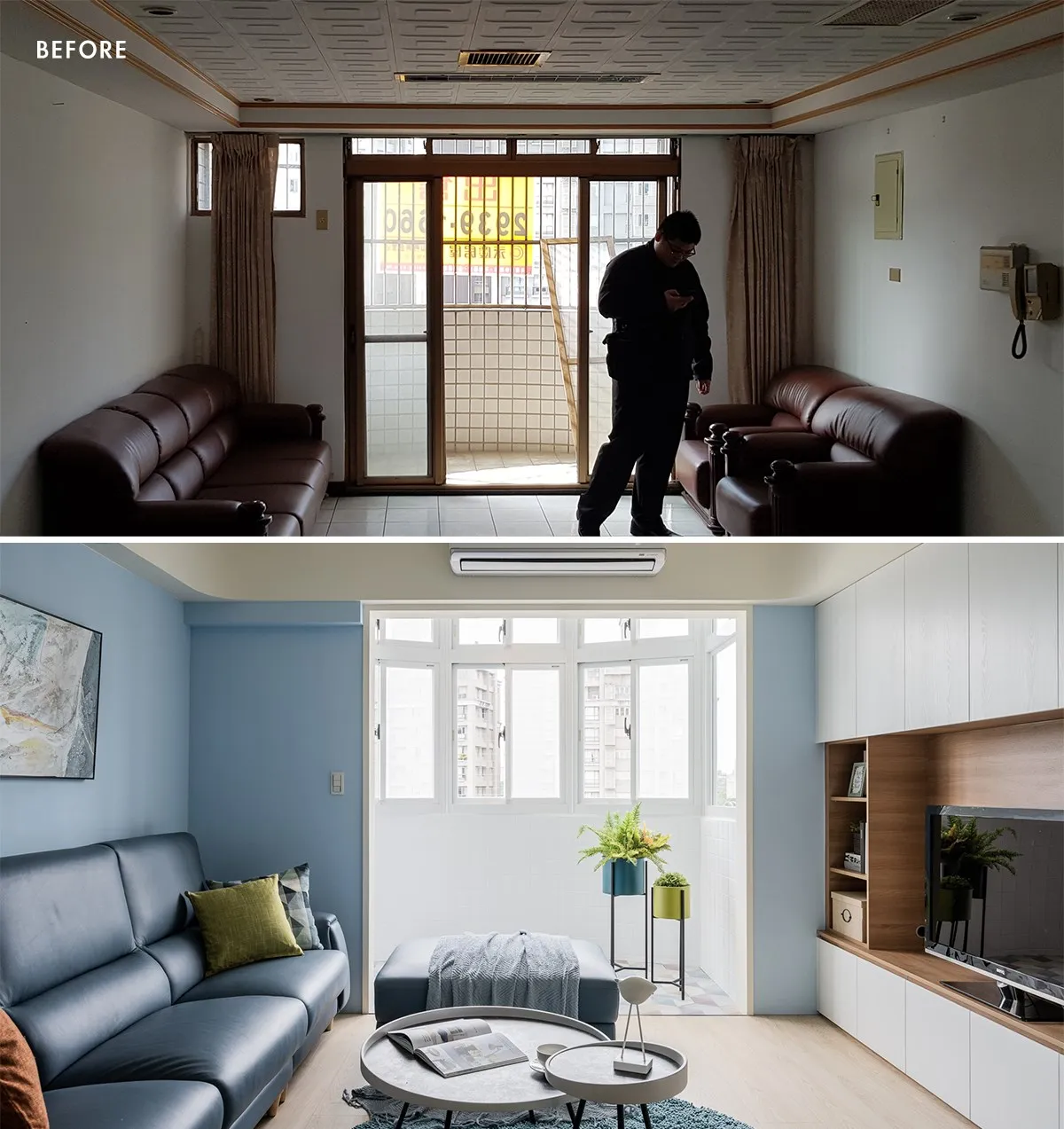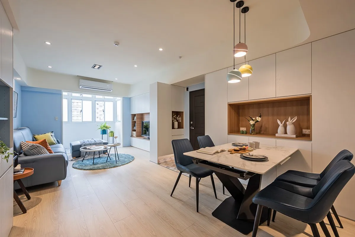 看著孩子逐漸成長,屋主於婚後買下的住宅已不敷使用,於是在鄰近社區買下 35 年老公寓進行翻新;喜愛北歐簡樸的居家風格,也喜歡地中海那般浪漫璀燦景致,屋主在找上 澄易設計 後,融合地中海色彩與北歐簡約特質,親切溫馨的生活景況也終於成形。