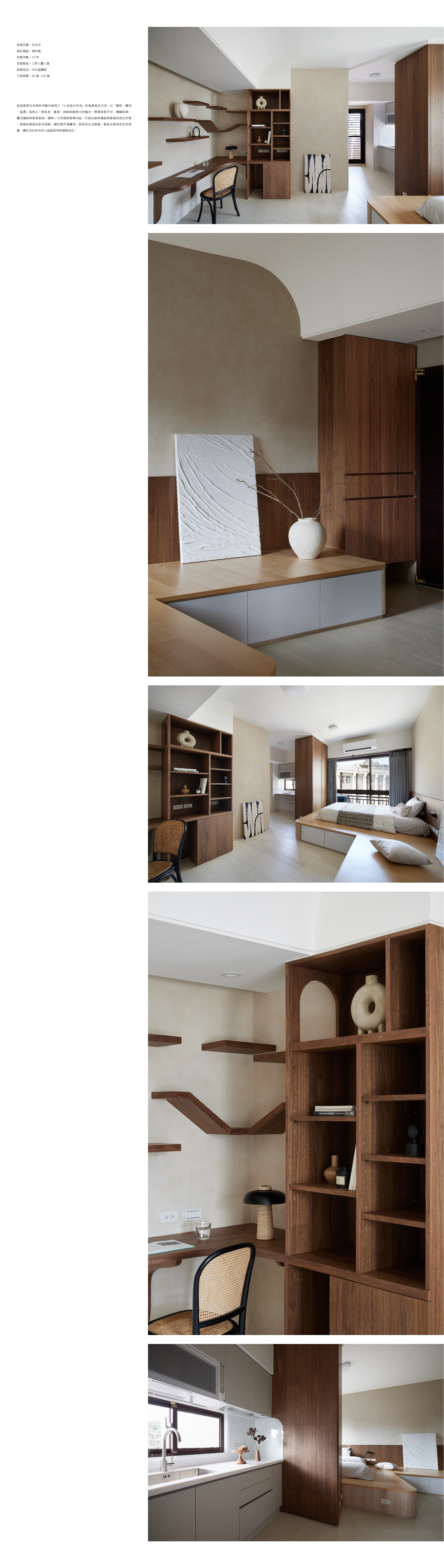 整體設計以 「現代簡約 × 木質溫潤」 為主軸,透過淺木色、米色與深色木質的層次搭配,營造出柔和而有質感的居家氛圍,留白的牆面搭配少量藝術品,讓空間在簡單中展現個性,並在機能與美學之間找到平衡,展現了