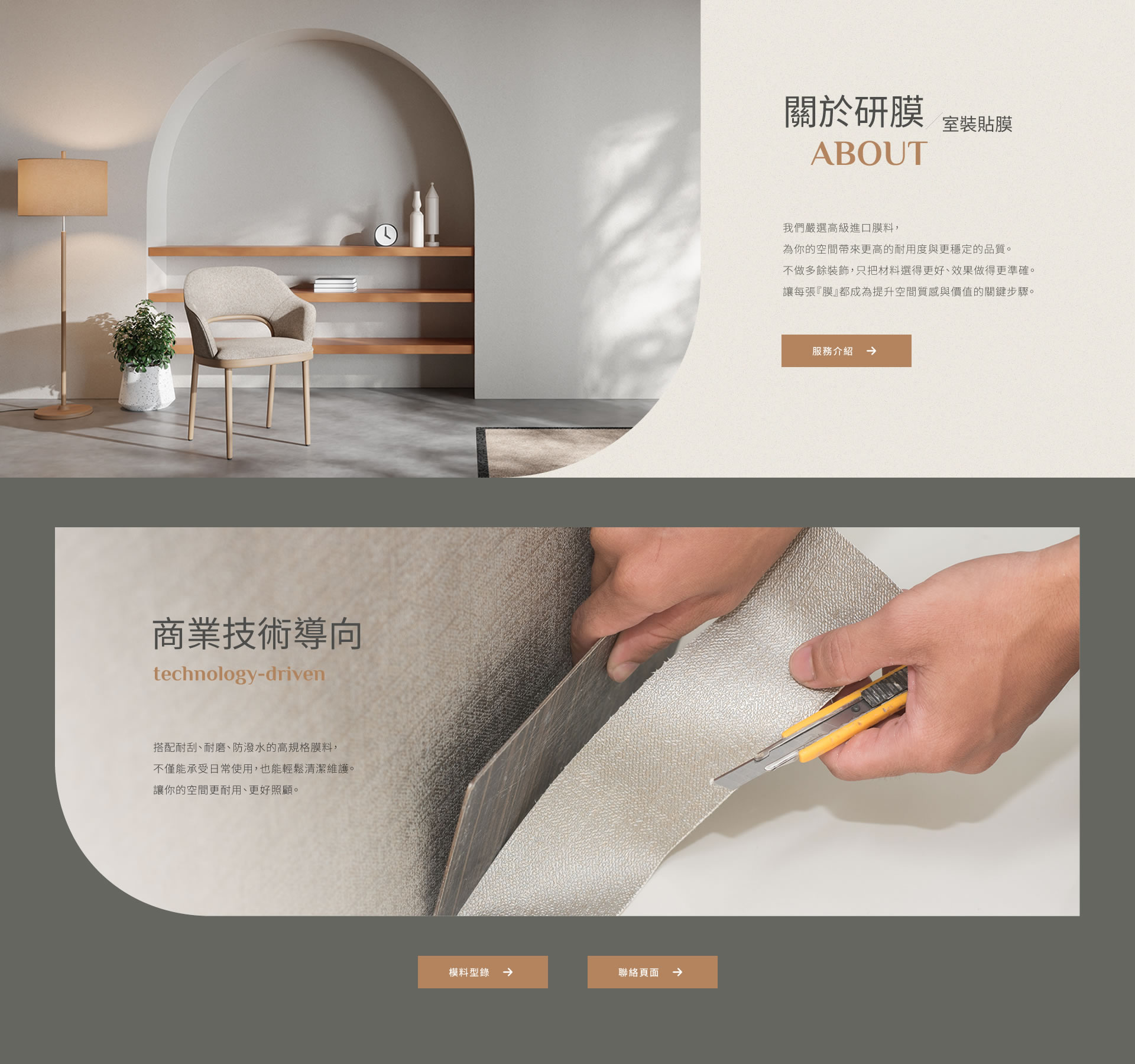 我們嚴選高級進口膜料,為你的空間帶來更高的耐用度與更穩定的品質。不做多餘裝飾,只把材料選得更好、效果做得更準確。讓每張『膜』都成為提升空間質感與價值的關鍵步驟。