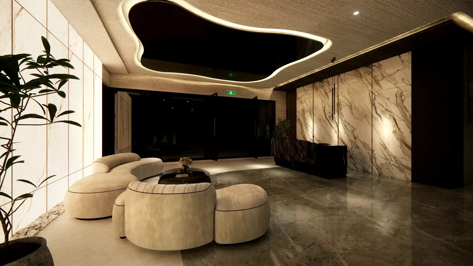 流線型語彙貫穿整體,從家具造型延伸至動線引導,使視覺與行走之間無縫銜接。搭配精準安排的光影層次,展現空間的節奏感與設計深度。