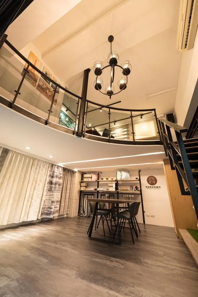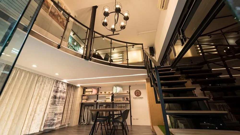 黑色旋轉樓梯在挑高天花板下演奏出黑與光束之間的互動性,空間中不斷演繹著一節一節的樂章,光線於室內自然流動的視覺美感,滿足商業空間的強烈表演慾。