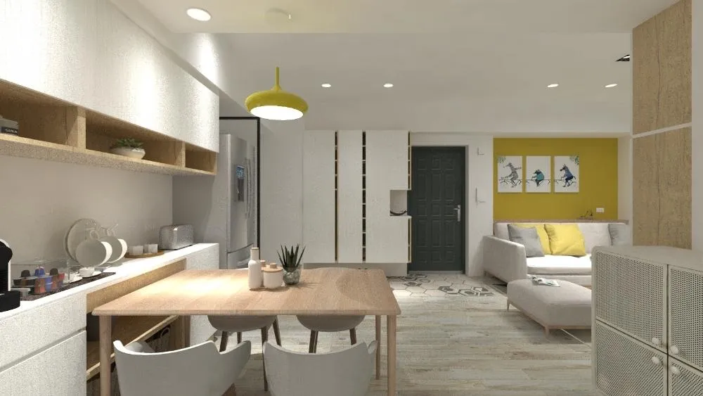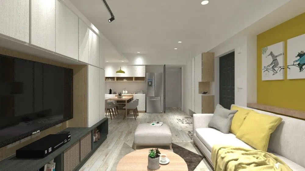 屋主喜愛溫暖簡樸的居家氛圍,也喜歡朝陽般活潑的奇光黃,融合色彩與簡約特質,親切溫馨的生活景況也逐漸成形。