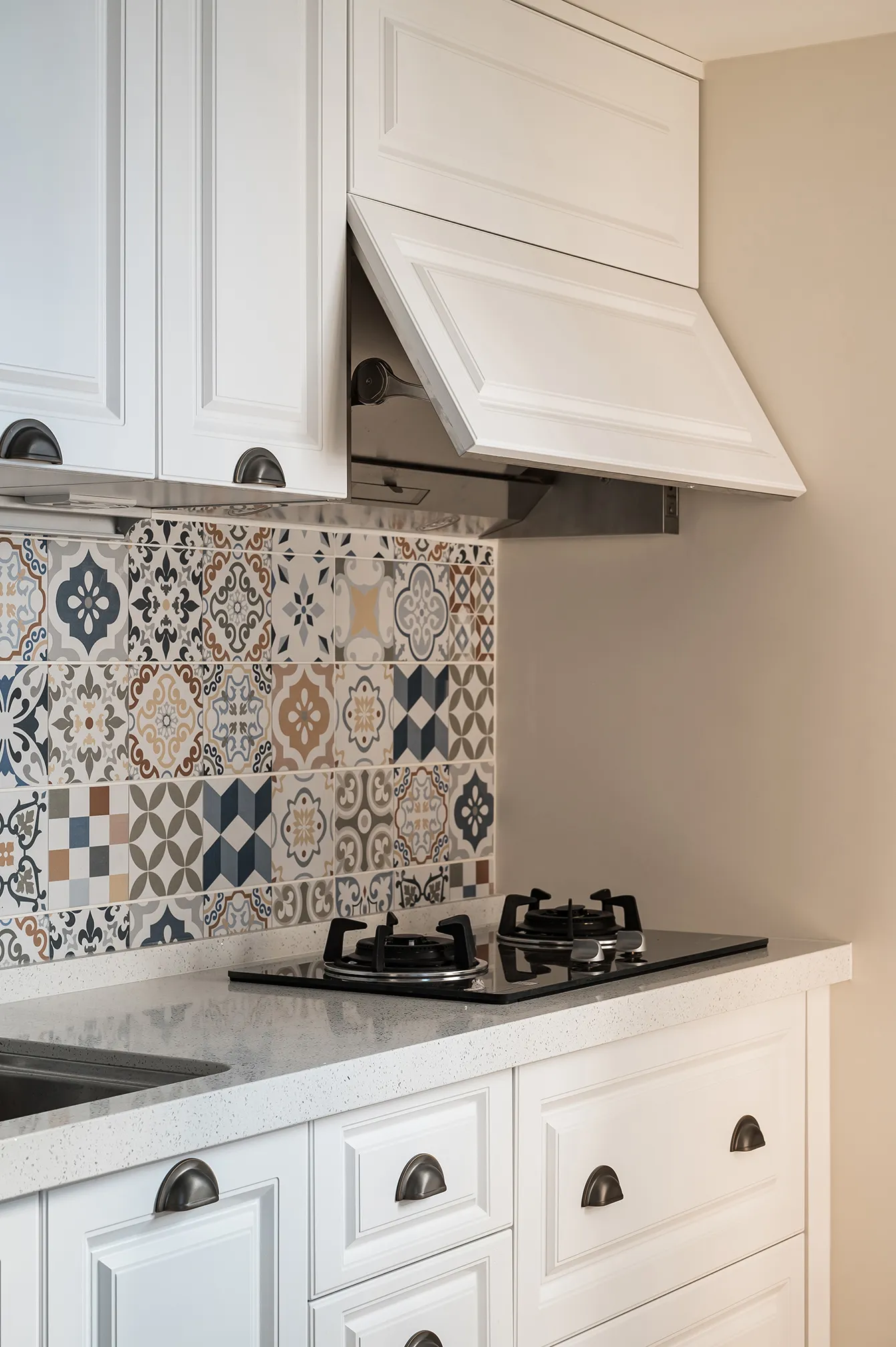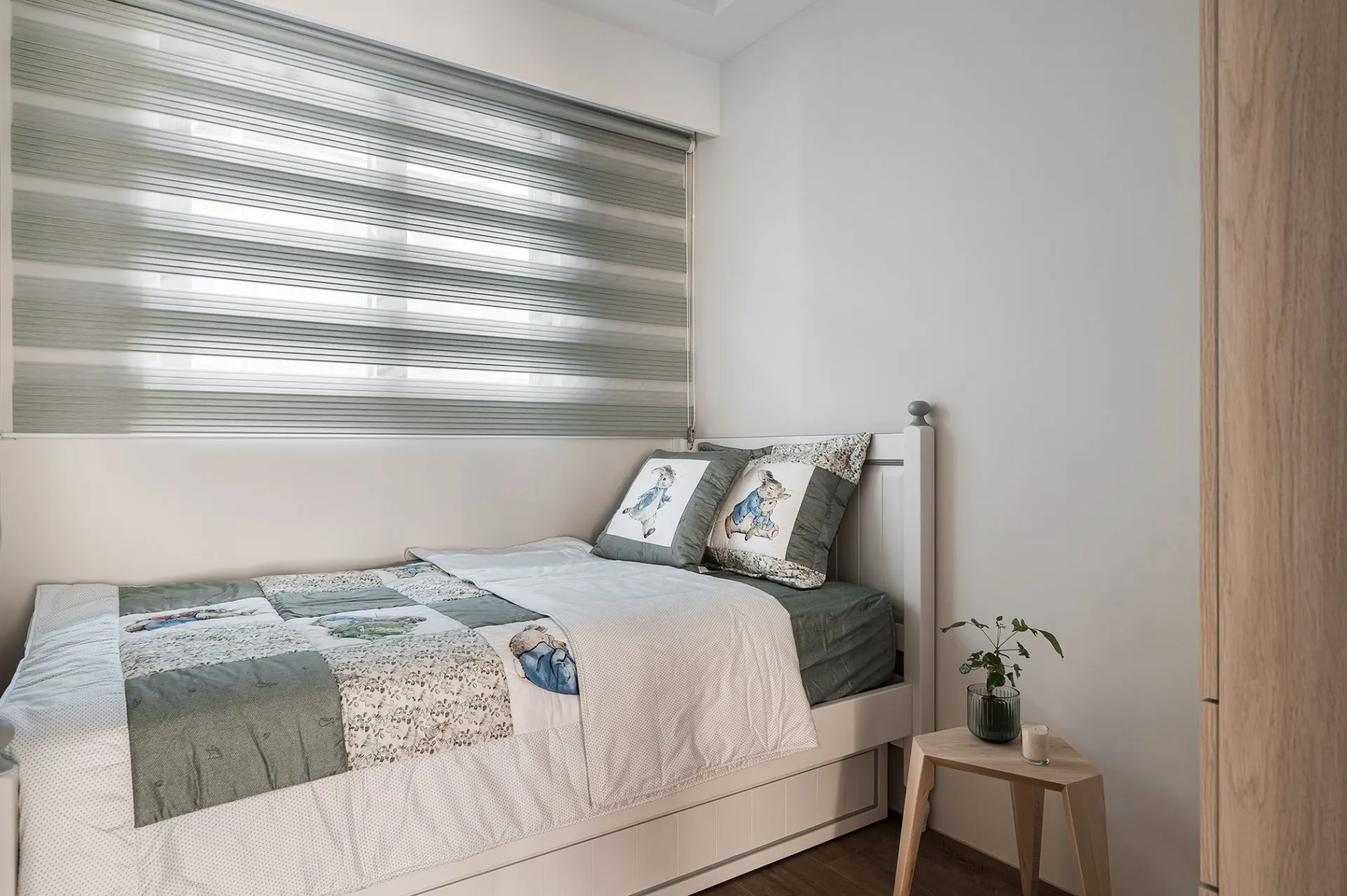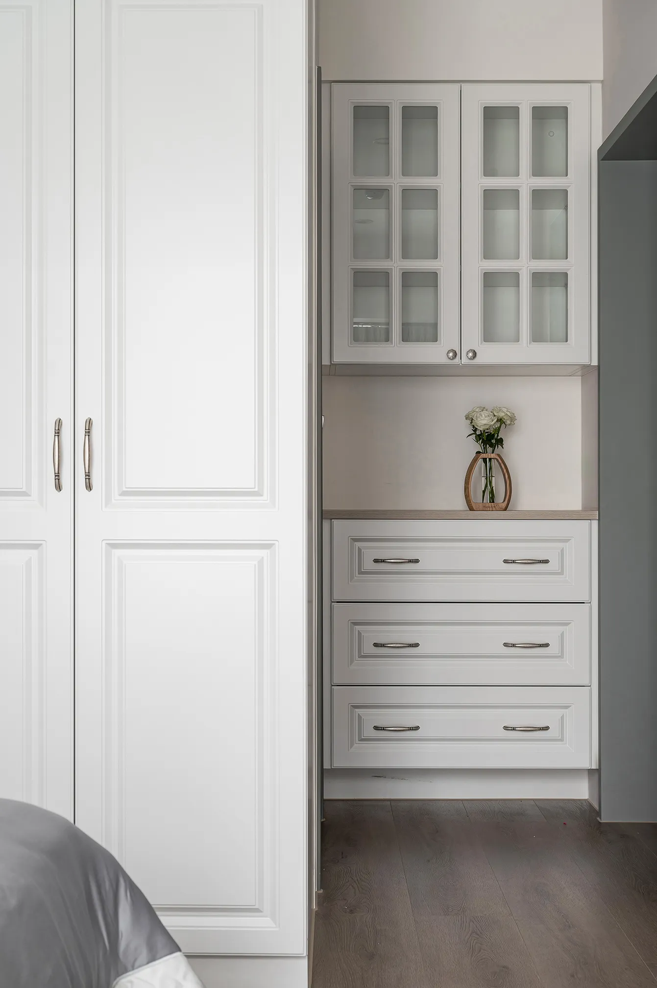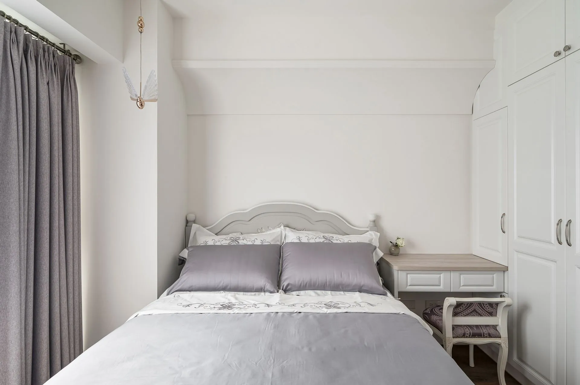 屋主是位有氣質退休女老闆,在年輕的時侯就有一個夢想要能擁有一間 南法鄉村風的家,餐廳對他來講是最重要的地方,家人朋友來時可以一起做飯聊天喝咖啡,平日可以在餐桌上喝個茶翻翻舊照片,兒女們有空也能來渡個假.每一盞藝術燈具都是與屋主共同討論,每一款把手都是特別挑選搭配,廚房的壁面花磚/房間的玻璃格子收納吊櫃/進口的百葉窗都是屋主特指定所有的家具及寢具都是設計師全程陪同挑選搭配