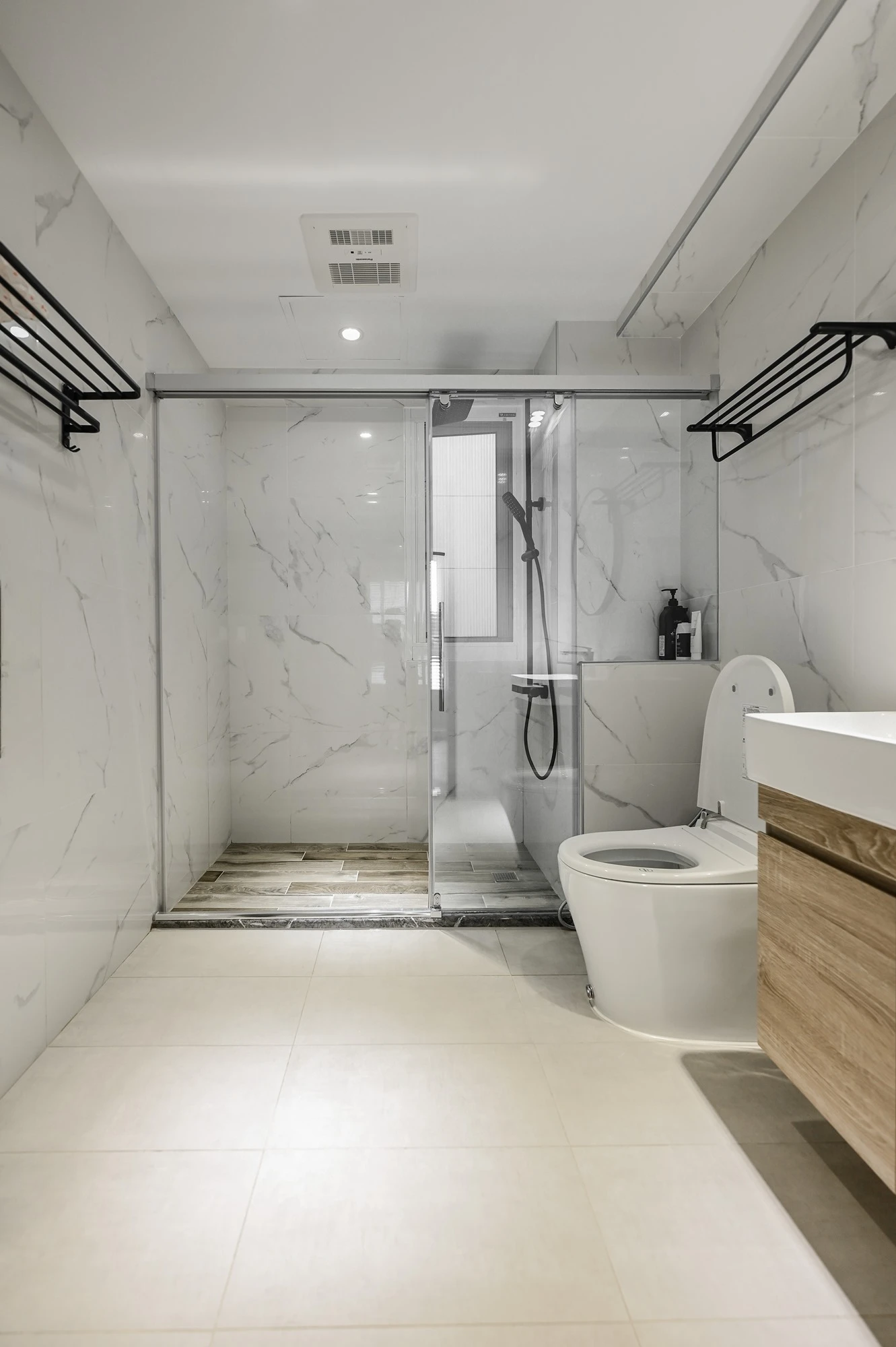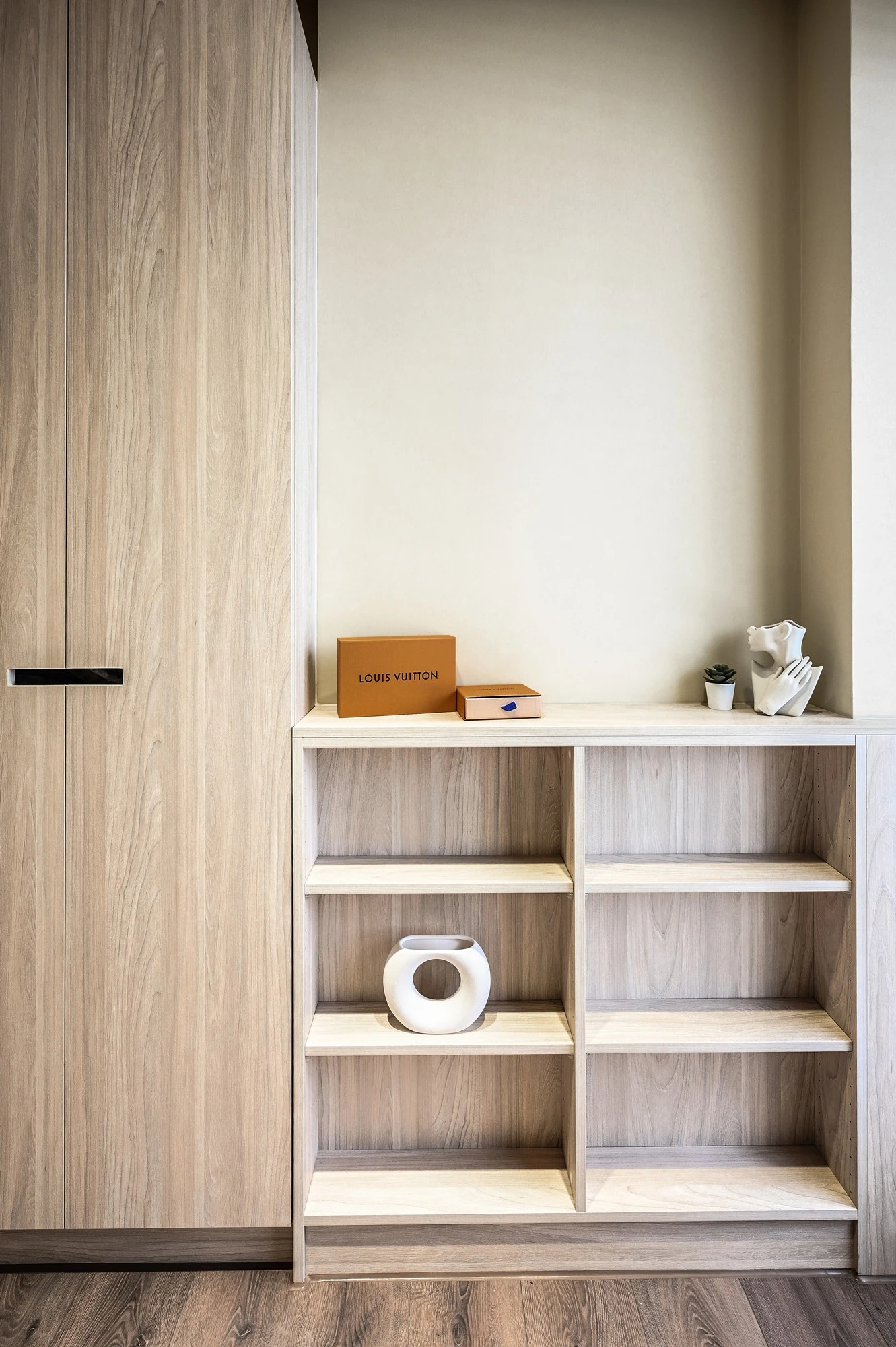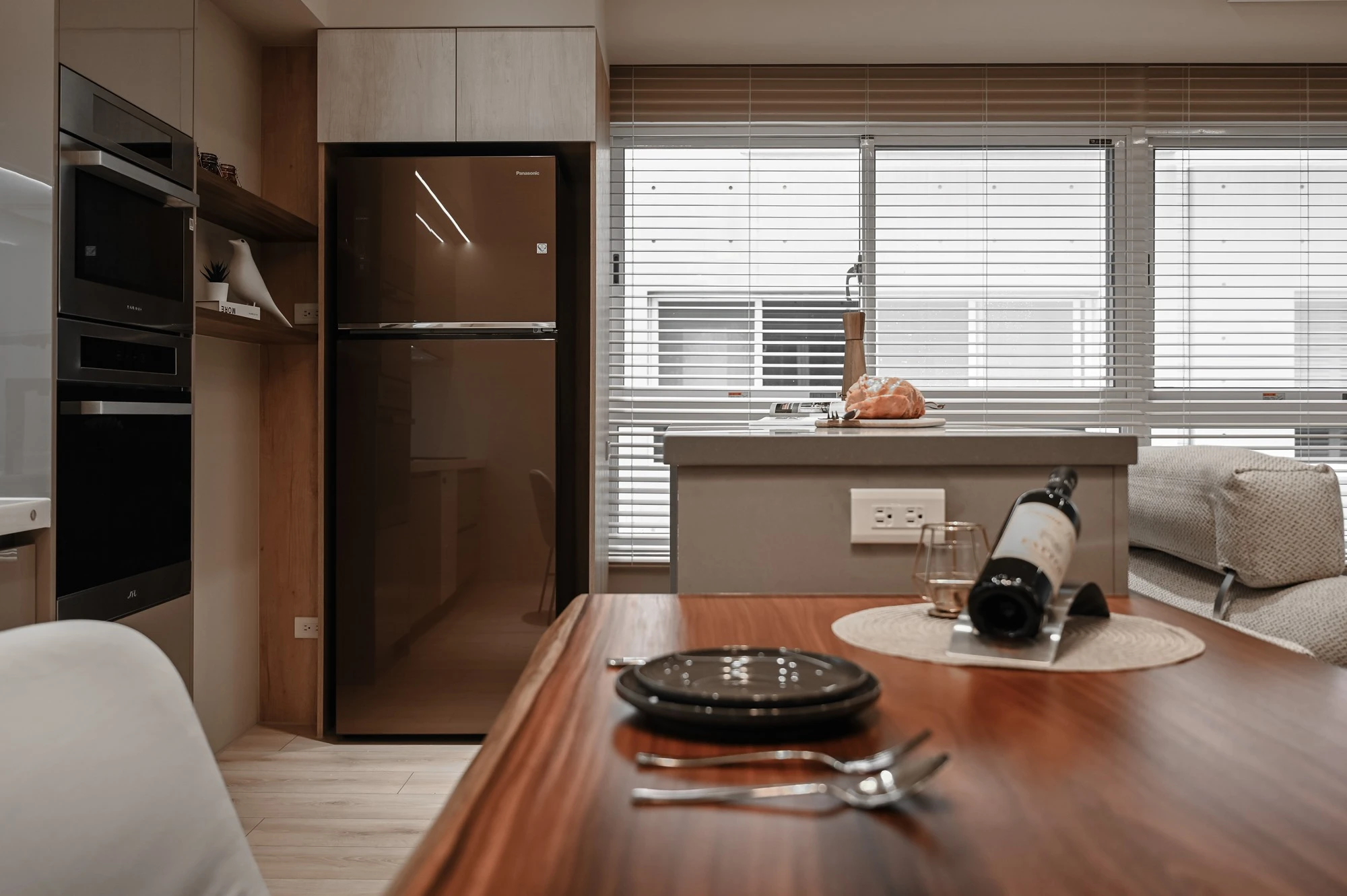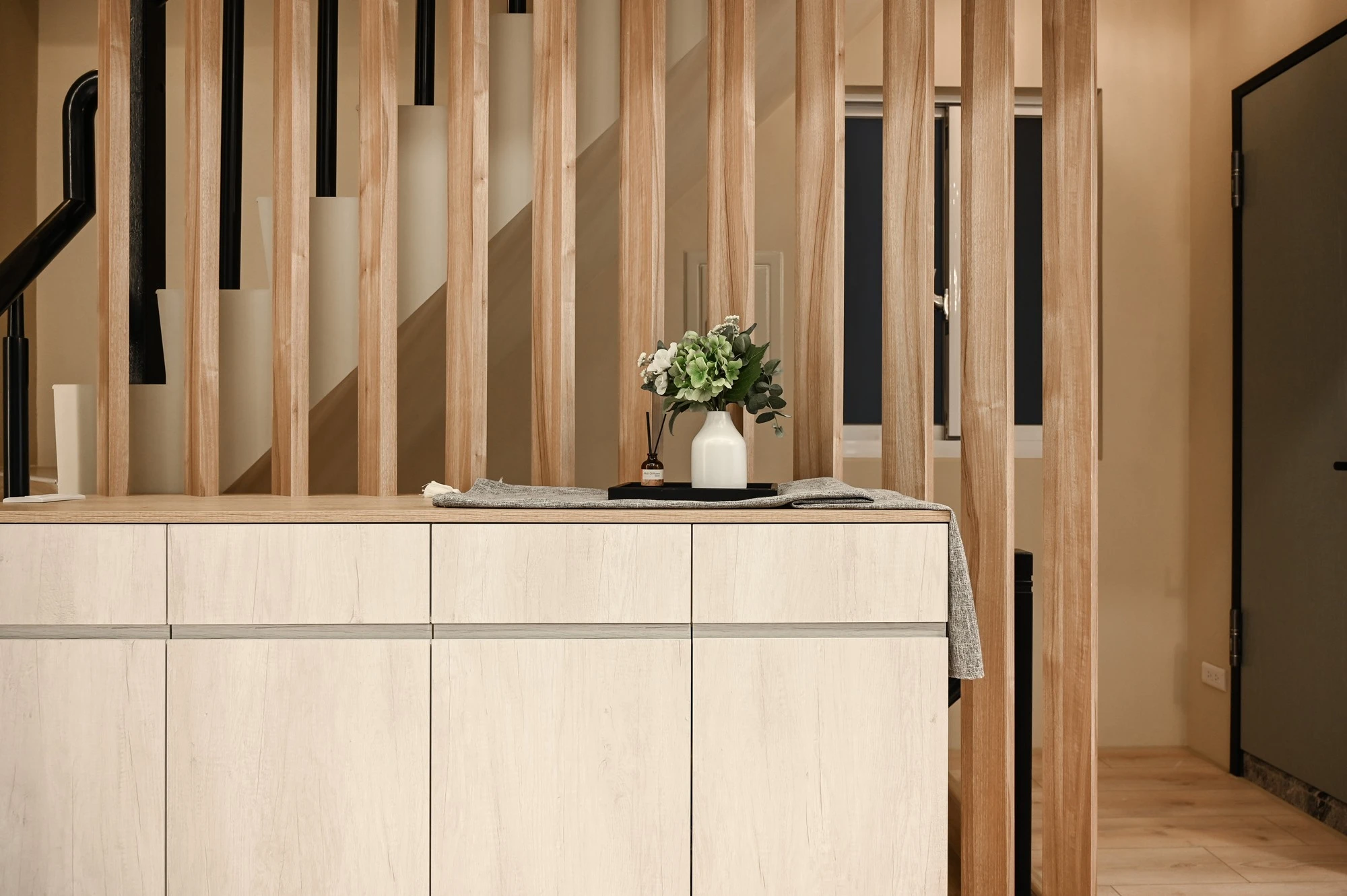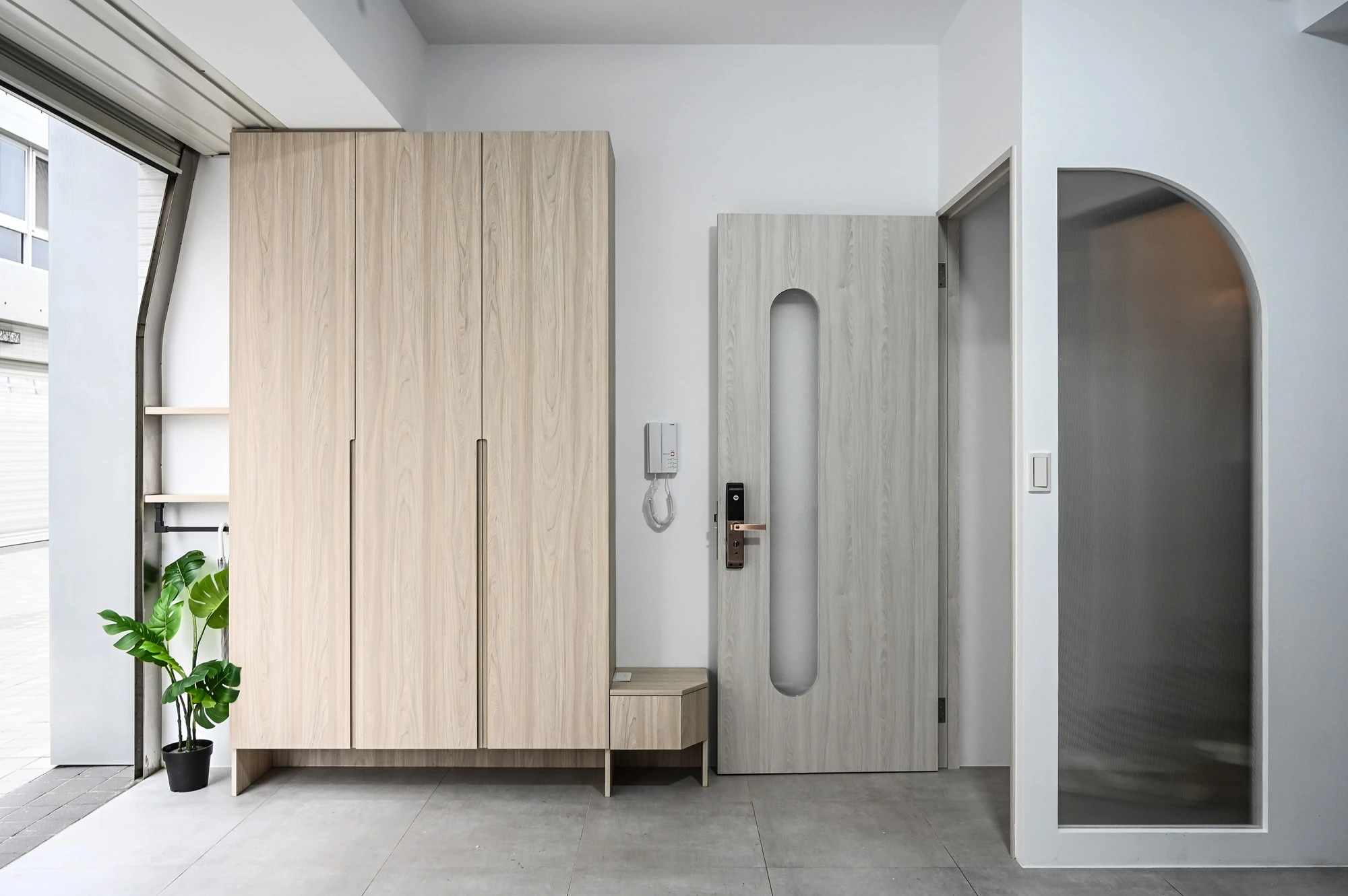 新成屋的案例美宅,我們以北歐風的溫柔底蘊作為設計起點,揉合自然材質與柔和光感,描繪一幅簡約卻細膩的居家風景,步入玄關,映入眼簾的是格柵牆設計,兼具視覺引導與空間分界,讓家的第一印象簡約而有層次;開放式餐廚空間延展了空間尺度,讓料理與日常交流自然流動,明亮、開放且富有溫度。空間中穿插的弧形門框與造型鏡面,柔化線條語彙,也成為串連視覺的藝術節奏,臥室以床頭線燈勾勒靜謐光影,搭配暖色調牆面與溫潤木地板,營造出放鬆療癒的私領域氛圍,精品級的衛浴空間和理石花紋鋪陳細節質感,在每個轉身之處,都藏著生活的細節品味,這不只是空間的打造,更是生活美學的實踐。