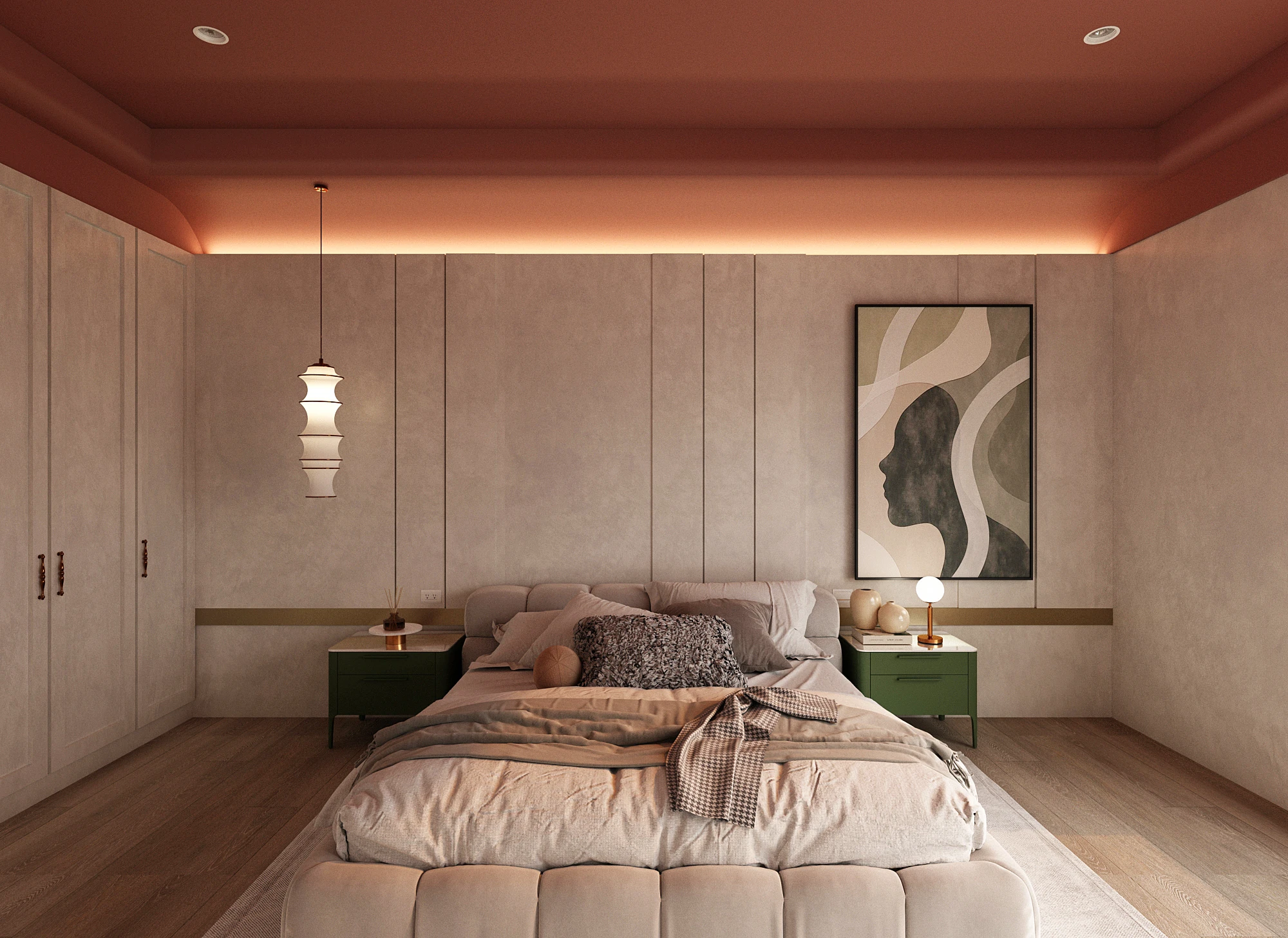 以「雲隱」為意象,將空間塑造成一處遠離喧囂的靜謐居所。設計透過柔和的弧形天花與間接光源,營造如雲層環繞般的流動感,使光線在空間中緩緩鋪展,帶來溫潤而安定的氛圍☁️。