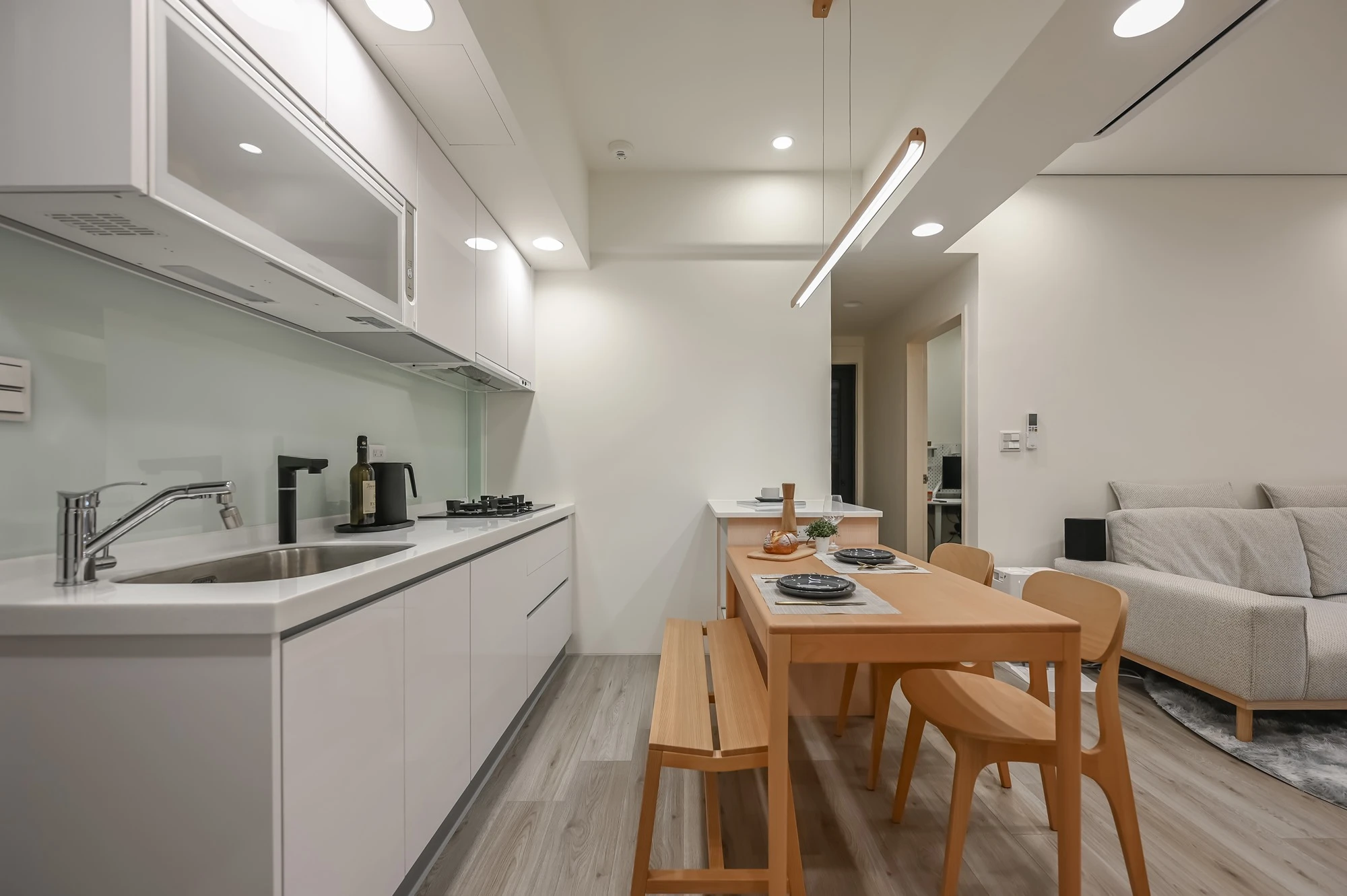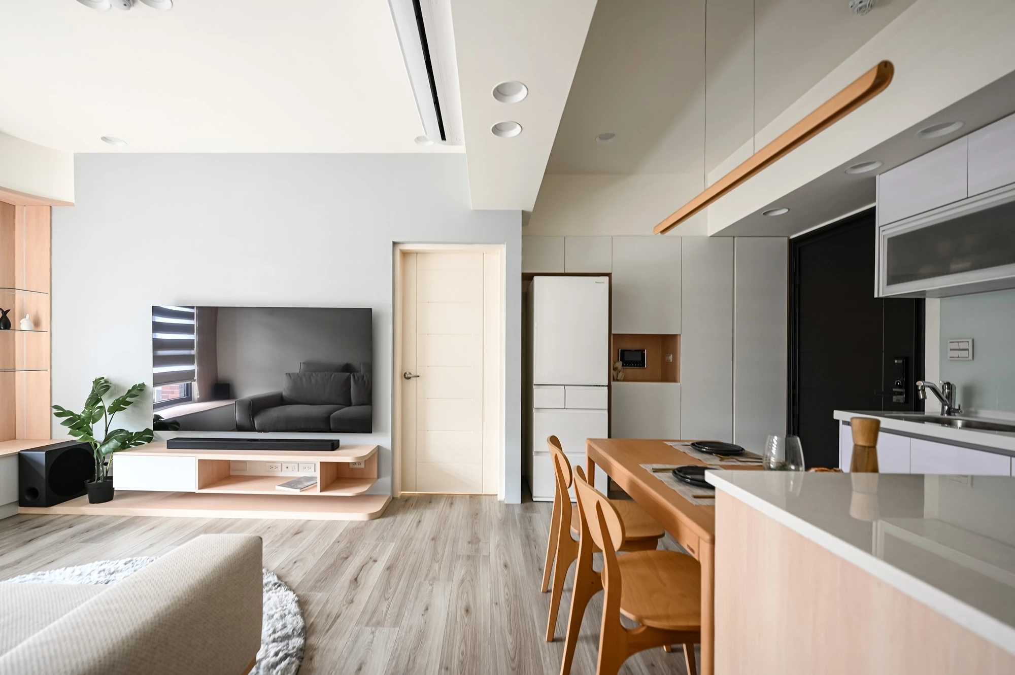 空間設計以柔和陽光為靈感,打造出充滿北歐風情的居家環境,自然元素的融入,讓每一個角落都散發出寧靜與溫暖,奶白色調的牆面與配件,配合簡約設計,為空間增添柔和的光澤,創造出清新、寧靜的氛圍,進入這個空間,彷彿置身於一個舒適的北歐小屋,木質餐椅的選擇,完美呼應北歐風格對自然材料的喜愛,每一條木紋都透露出生活的質感與溫度,增添空間的溫馨感,讓居住者與環境緊密聯繫,設計中線條簡潔且富有層次感,無論是家具、照明還是裝飾,都巧妙融合,保持空間的開放感與實用性,既現代又溫暖,完美詮釋風格的簡約精髓,將自然元素與現代設計完美結合的空間,讓居住者能在這裡感受到陽光的懷抱與木質的溫暖。​