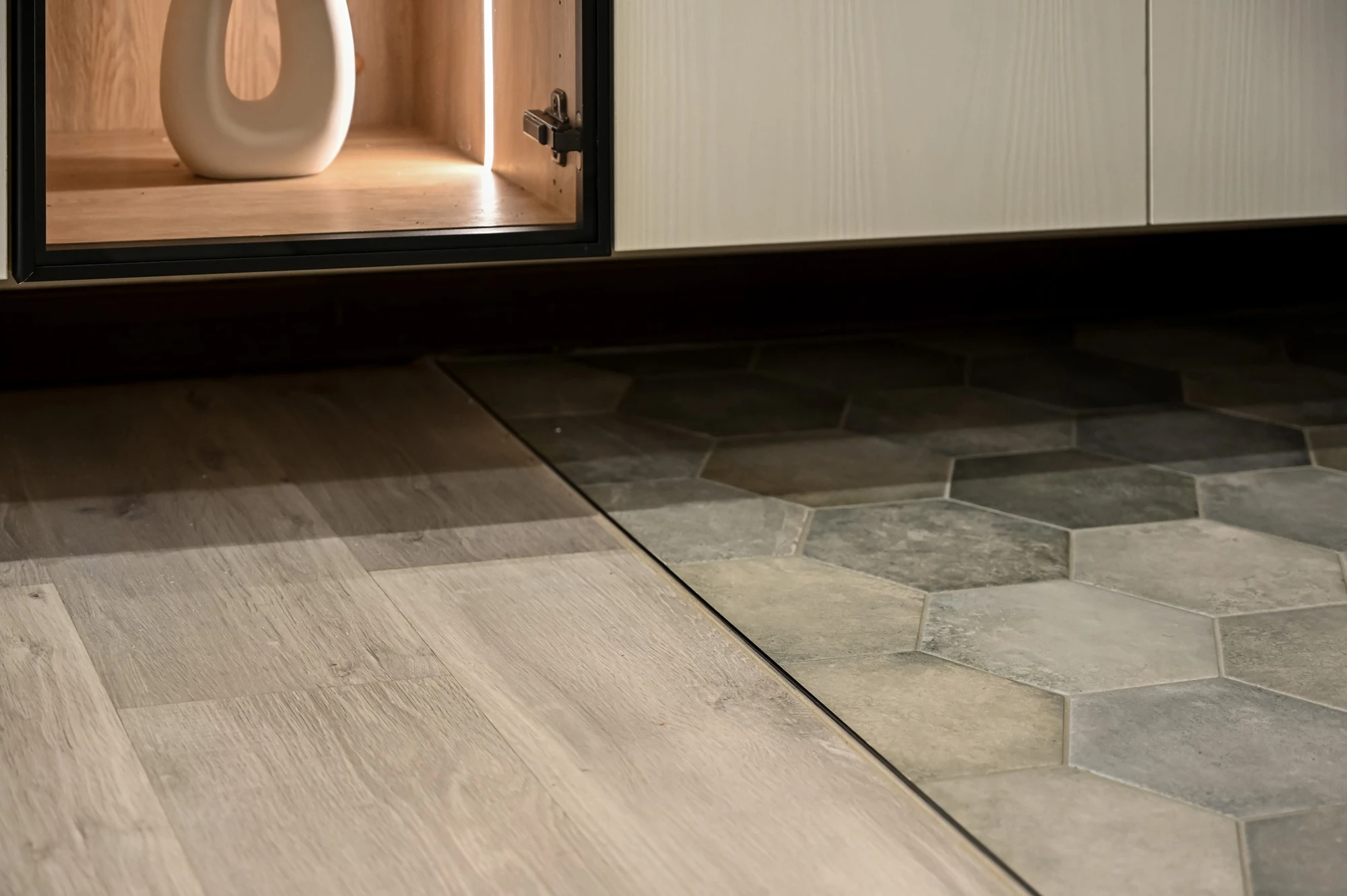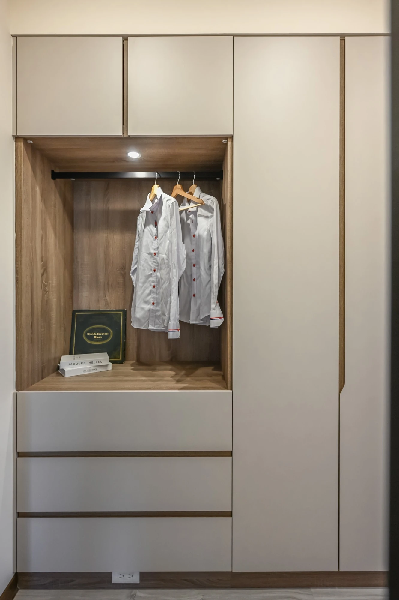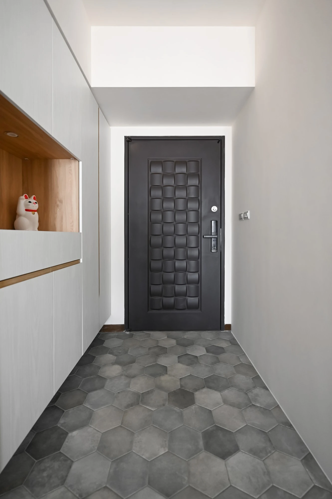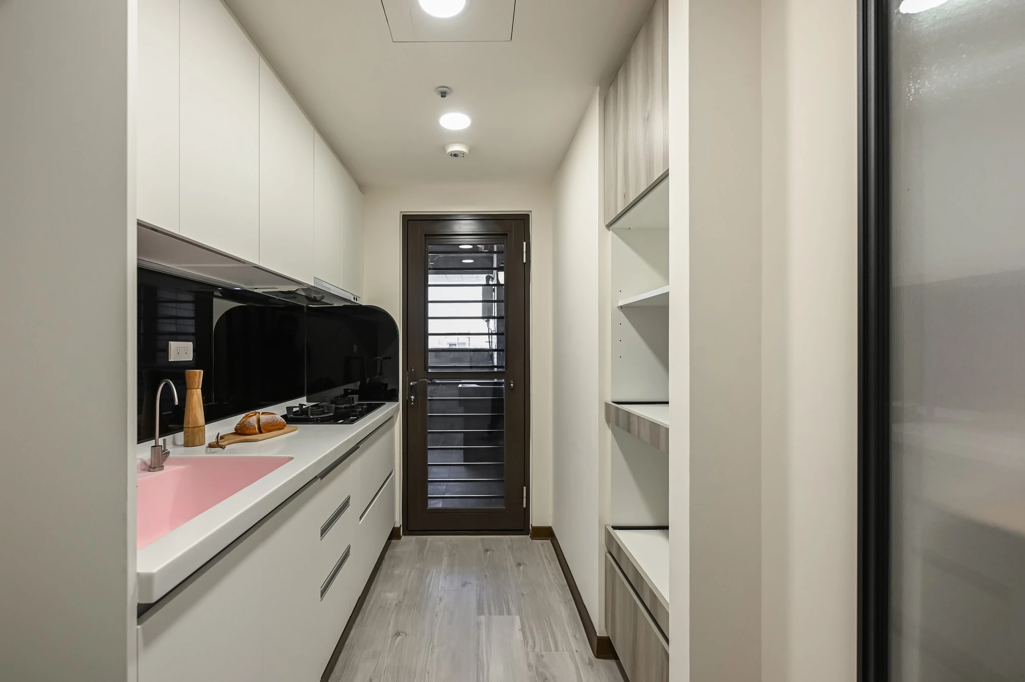 以復古輕美式風展現輕盈與美好的想像生活,玄關處以六角磁磚搭配白色櫃體展示和收納,一進門便可以感受到家的專屬呵護,淺木色地板和奶油色沙發、造型感茶几表現了美的空間哲學與溫潤,廚房規劃黑線條玻璃推拉門營造放大的視覺感,美觀同時兼具實用,臥室採用胡桃木系列和床頭燈喚醒柔和典雅的氛圍,由窗戶瞭望出去體會到家的實現,衛浴特別選擇了不規則花紋大理石,整體完美呈現細膩的設計感與精緻, 勾勒出優雅的美式生活。