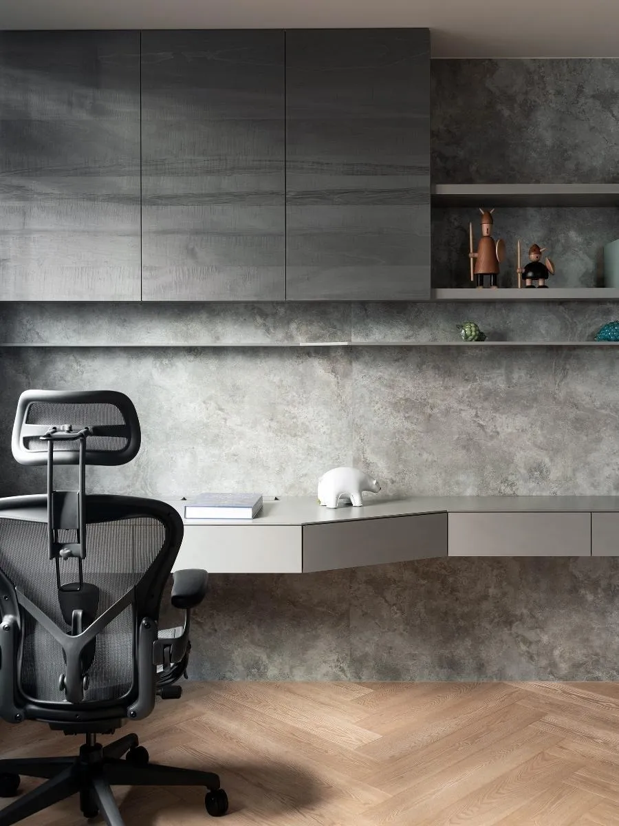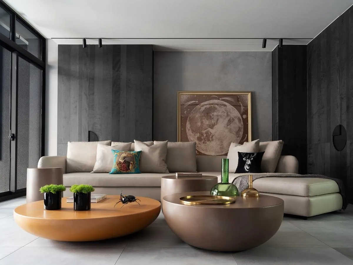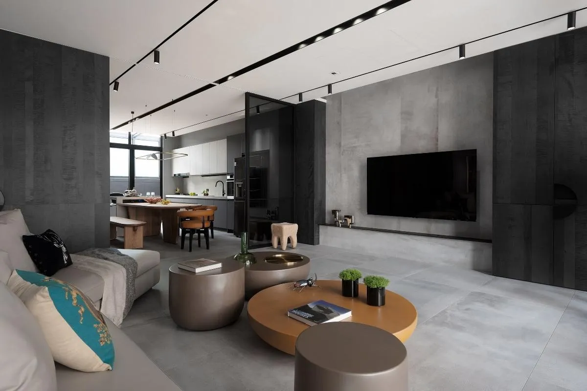 寧靜的空間氛圍,自然色調融入清水模灰、大地暖色和木質水波慕黑,輔以橘色暖調的傢俱鏈接,讓人仿若置身曠野中,感受寧靜與和諧。亦透過結構、光影和材質的運用,創造出令人心馳神往的情感場域。