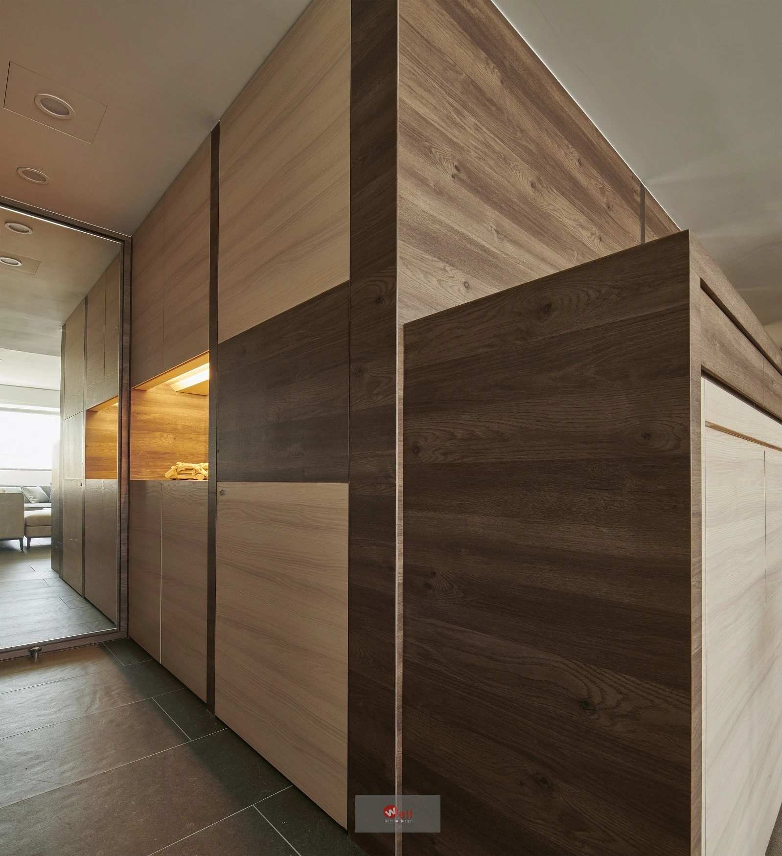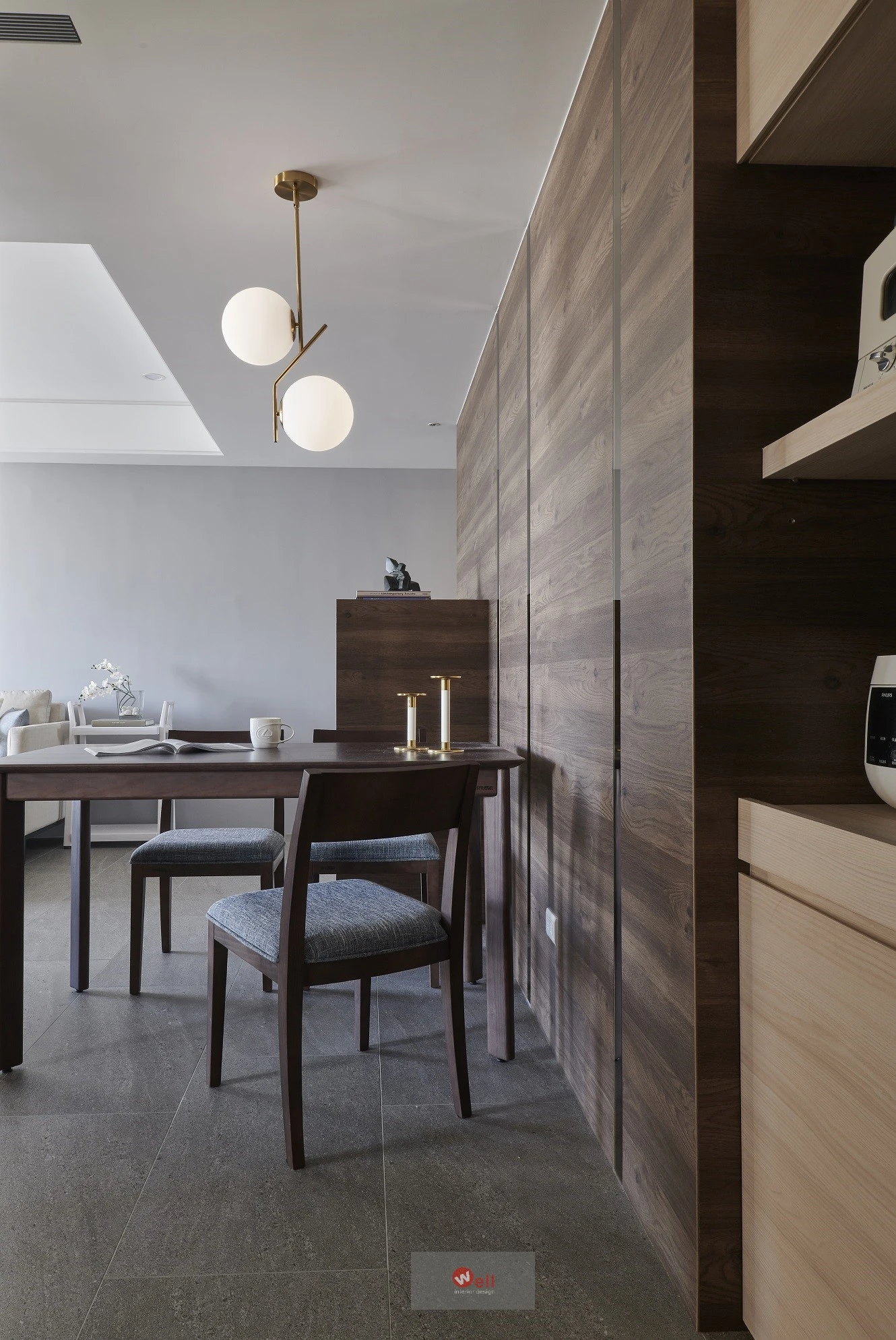 在「家」的本質上,我們更著重於機能的隱形化。利用大面積的隱藏式收納與俐落的線條分割,將三口之家的生活瑣碎完美收納於立面之中。從餐廚區的流暢動線到主臥室的靜謐氛圍,每一處細節的轉折,都體現了威爾設計對「人本生活」的深度觀照。
