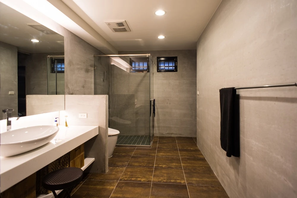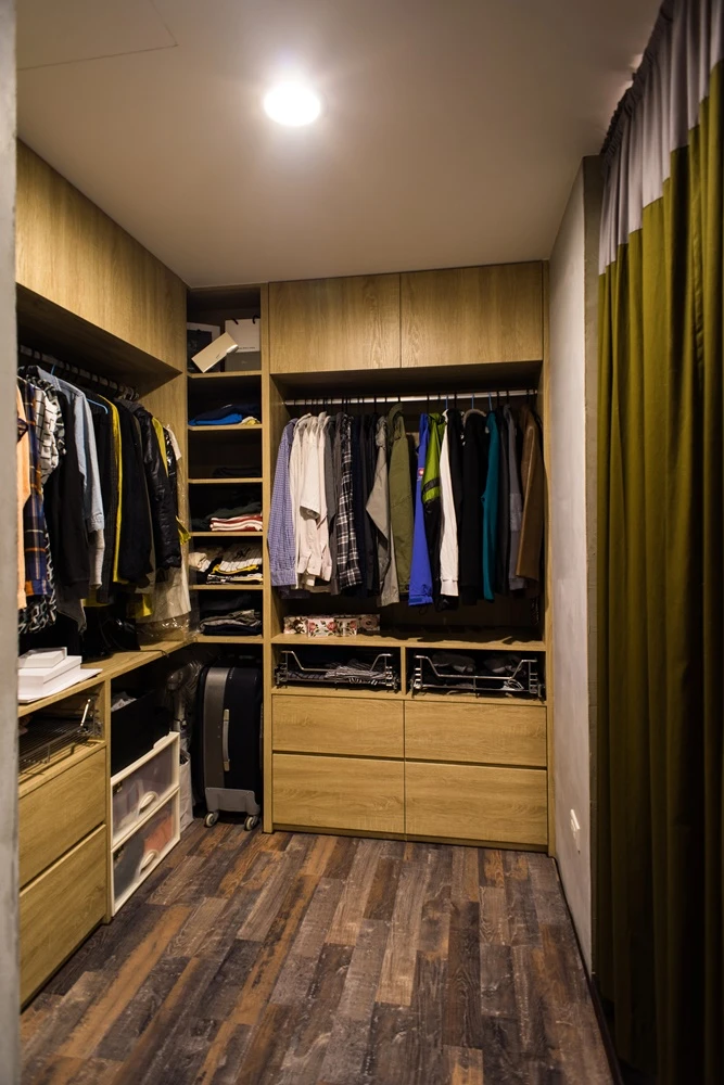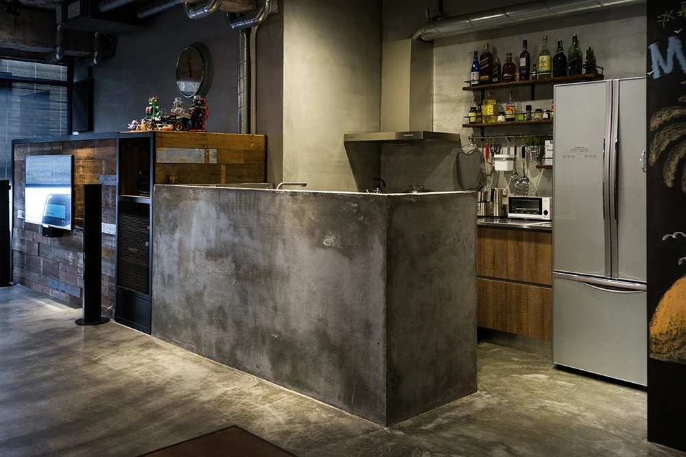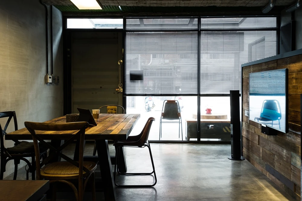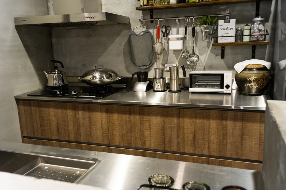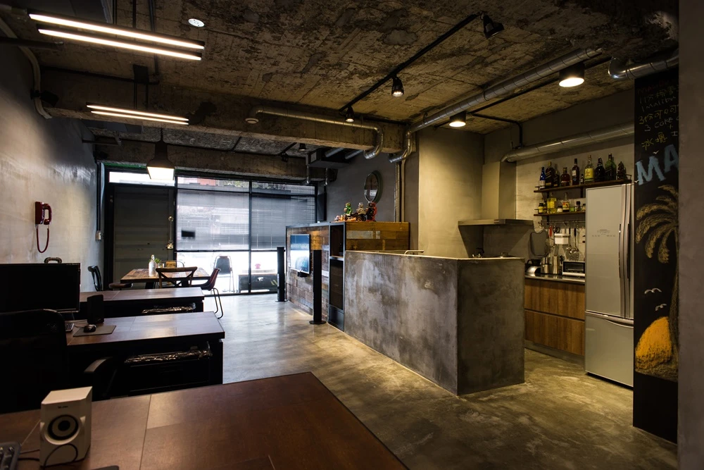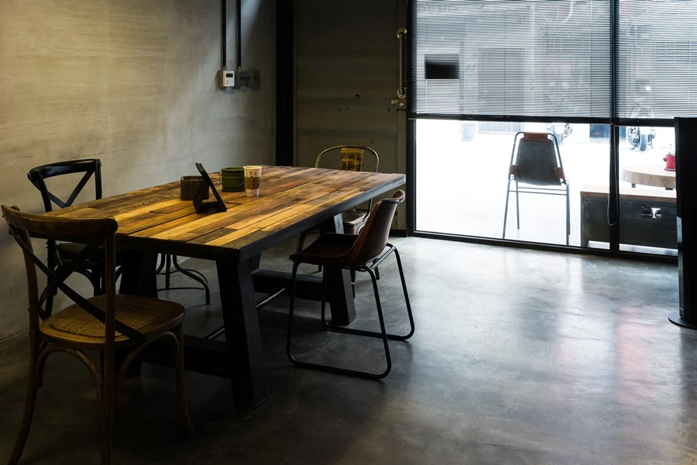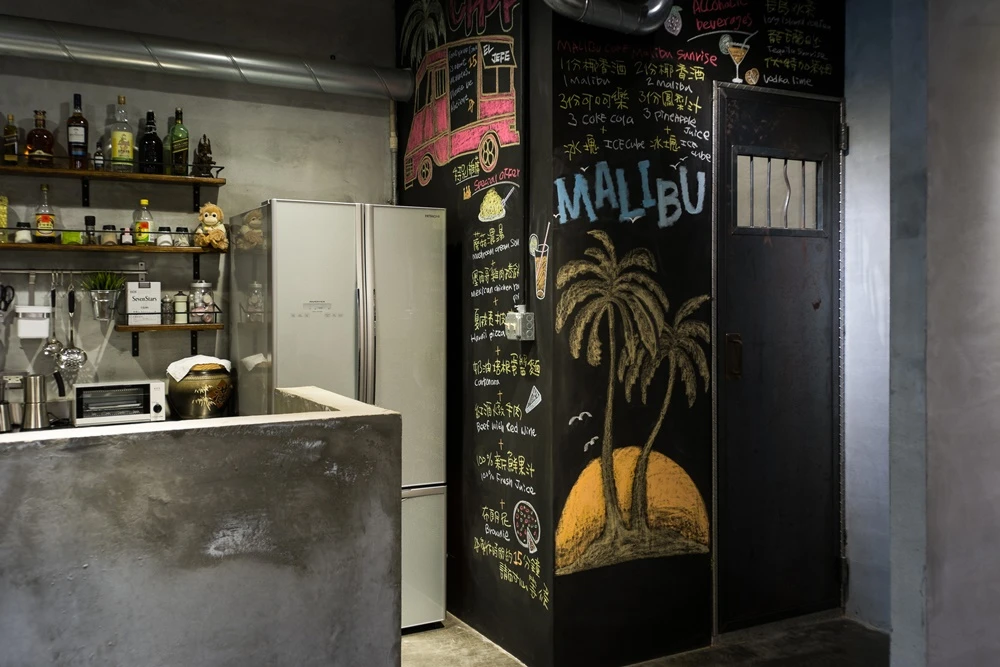 將辦公室與居住空間結合,是不少在家工作者的夢想,那麼,要如何將嚴謹的工作環境,與舒適休閒的居家空間找到完美平衡呢?優尼客空間設計主持設計師黃仲均以形象鮮明的工業風格為空間主體,加上原始且富質感的木材與水泥粉光,搭配具手感的傢具傢飾,混搭風情降低了工業風的冷冽感,也賦予屋齡超過 15 年的老屋不同面貌。 外觀彷彿是潮流咖啡廳的 UNIQUE DESIGN ,酷似倉儲門櫃的大門立刻成為吸睛焦點。走進室內,大量的木材成為空間的一大特色,包括櫃子、桌面,都以仿舊的木材組合而成,深淺色的木材拼接,與仿舊的金屬工業椅,增添懷舊氛圍,搭配老屋原有的骨架與裸露的天花板,加深了空間的原始質感,也強化整體的工業風格。空間地面以水泥粉光製成,當陽光照射進室內,地面會產生些微的光影變化,更能突顯細節紋路。 空間一隅為料理空間,以水泥牆面作為區隔,搭配木作餐櫥櫃,與空間材質呼應。一旁更以黑板漆做設計,上頭可以寫下今天的心情與工作內容,讓色調偏重的工業風空間增添幾許趣味色彩。洗手間仍以水泥粉光為地面主體,搭配仿舊的金屬門與櫃體,在細節處成就工業風格。臥房雖然沒有做太多強烈的工業設計,但同樣以木材與水泥組成,少有風格強烈的工業風傢飾,簡單清爽的擺設為冷冽的工業風增添溫暖感受!