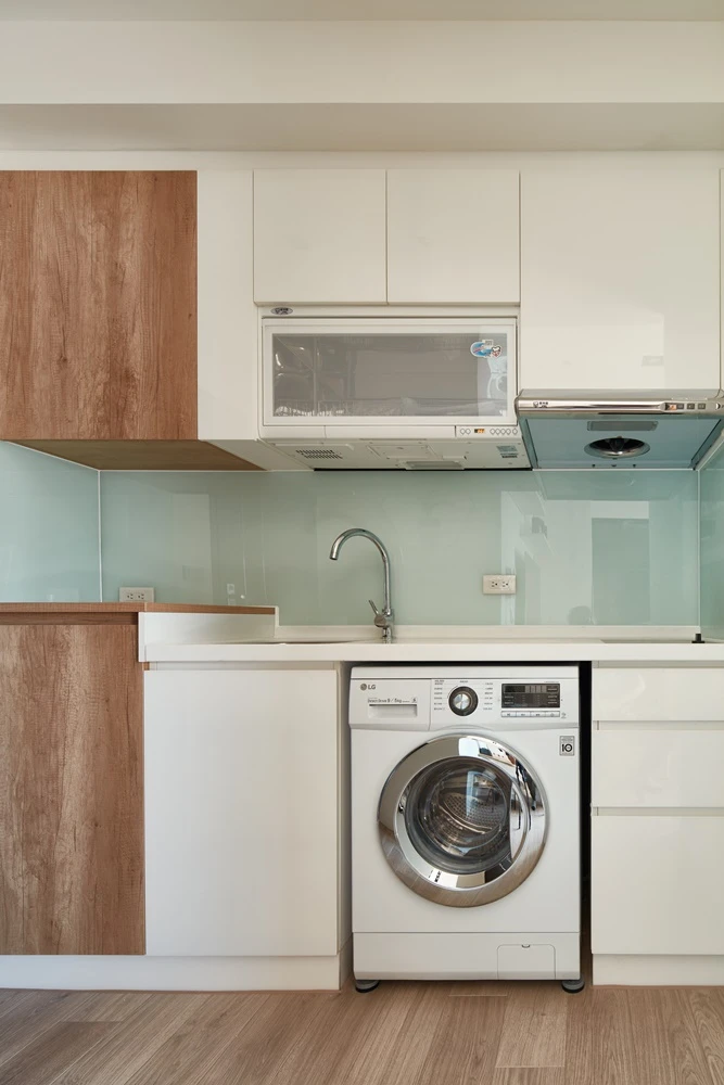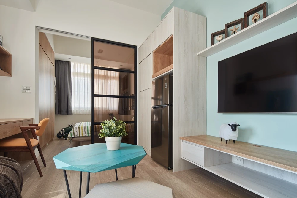 未來的女主人希望有一面Tiffany藍的牆面,但是又必須融入活潑的北歐色調中,我們不斷試了多款漆色,終於呈現出讓屋主滿意的色調。
