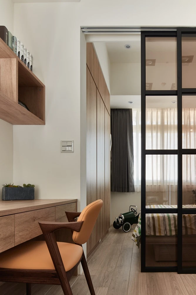 主要建材 噴黑鐵件、進口超耐磨木地板、跳色乳膠漆、Egger系統櫃板材