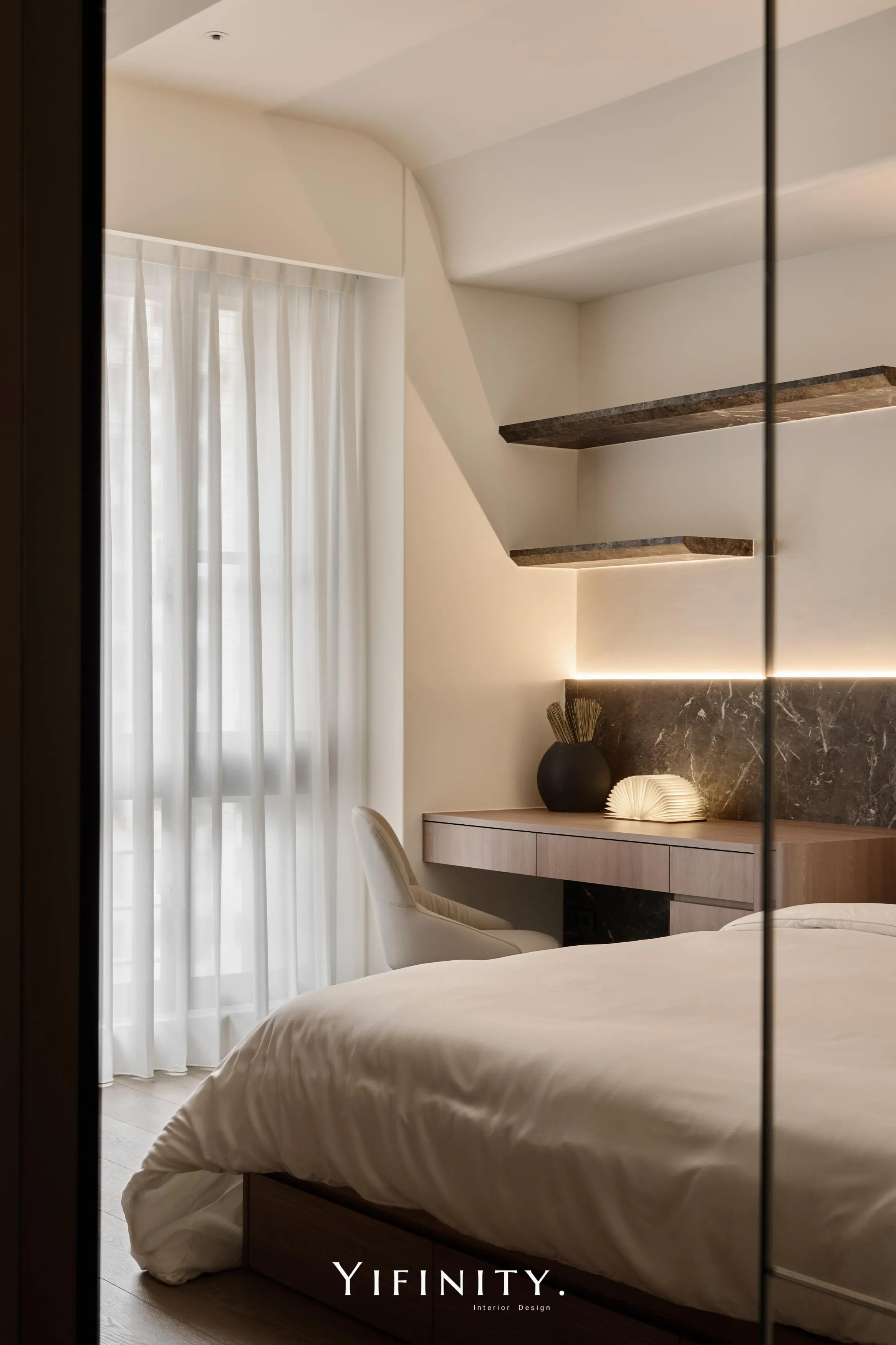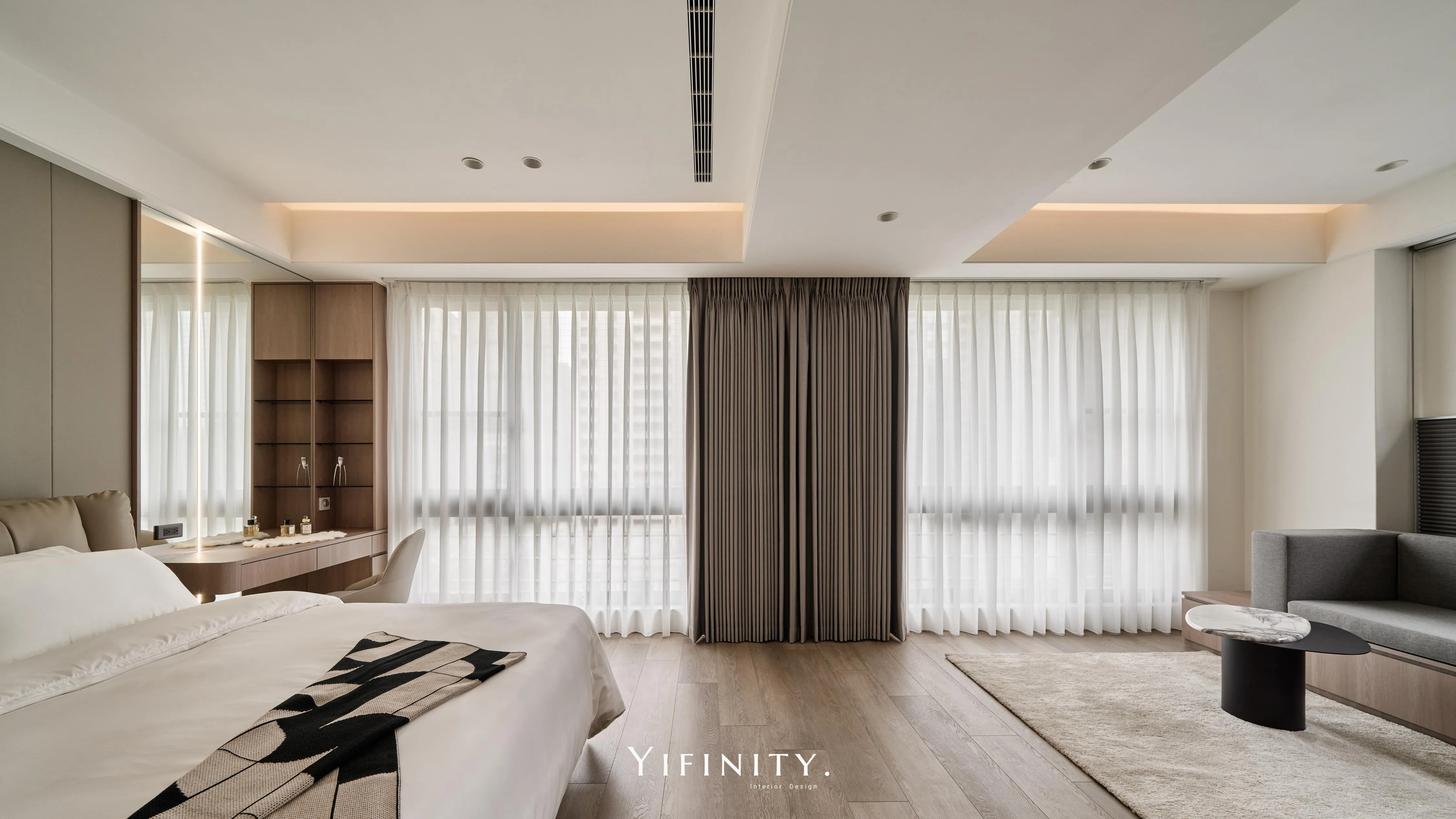 本案位於台中七期,鄰近歌劇院並享有公園景觀。設計以「現代 × 輕中式 × 禪風」為主軸,