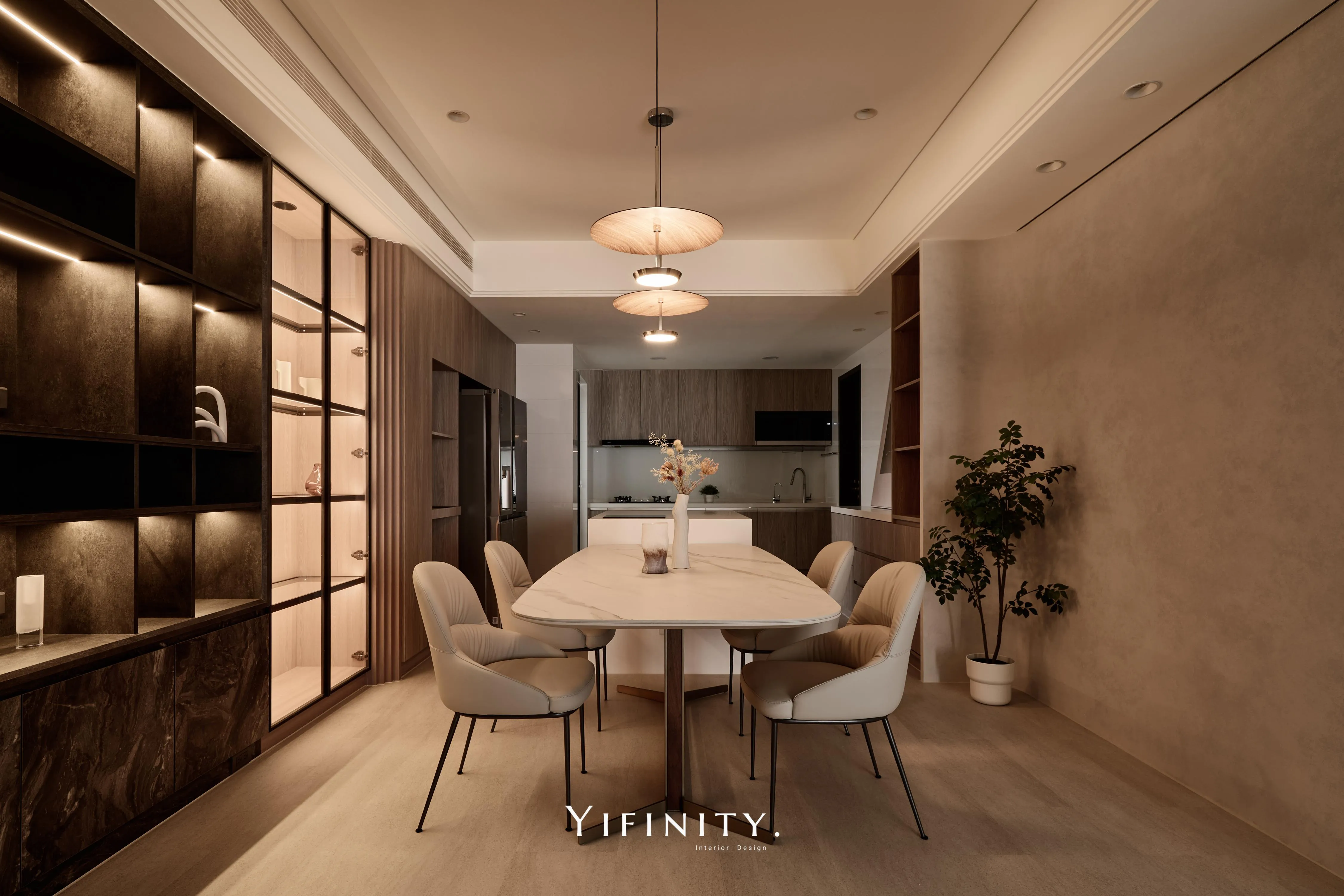 餐廳區依屋主喜好茶藝與品酒,規劃茶具展示櫃及酒櫃,