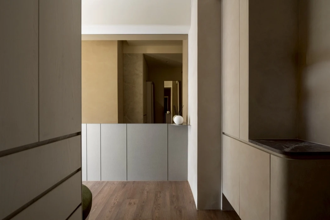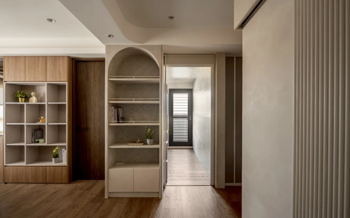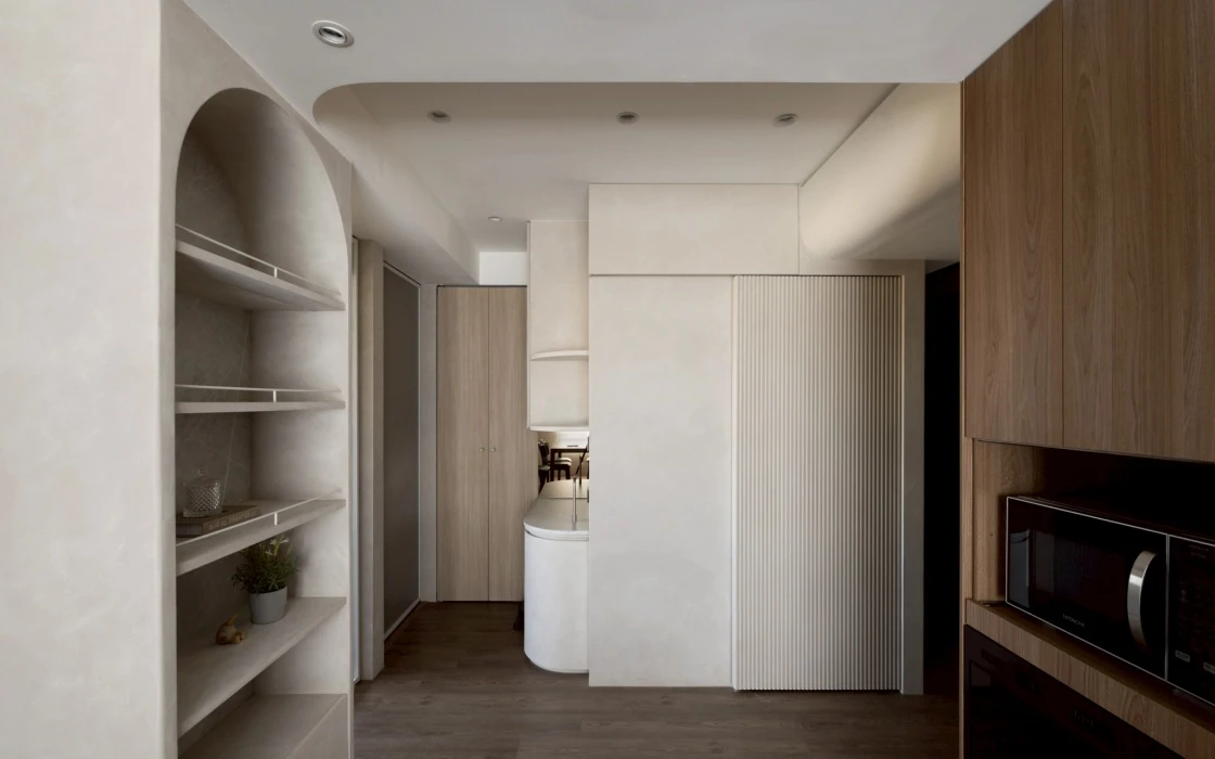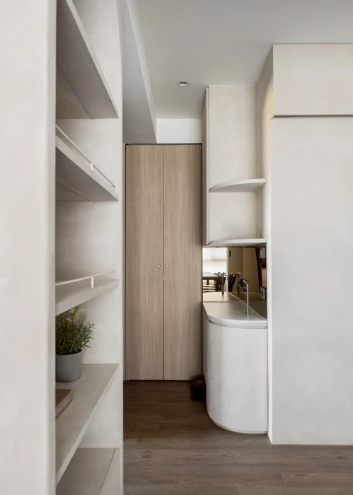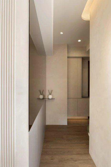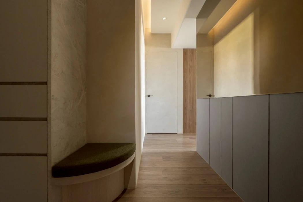從無障礙空間出發,重新思考動線、尺度與日常使用的可能性。在有限坪數中,透過鏡面延伸視覺、柔和燈光引導動線,化解狹長過道的不安感,讓行走成為一段溫柔而安心的過程。