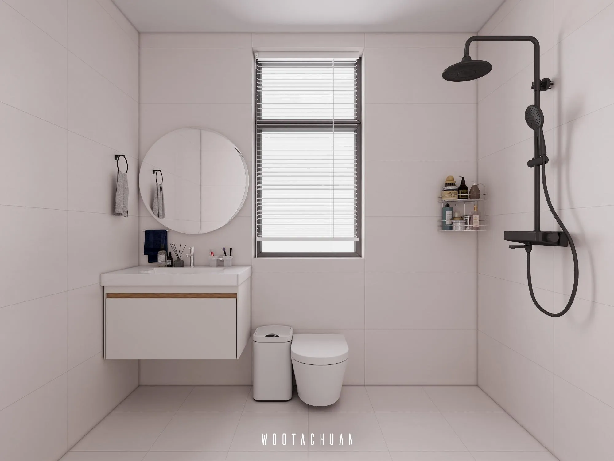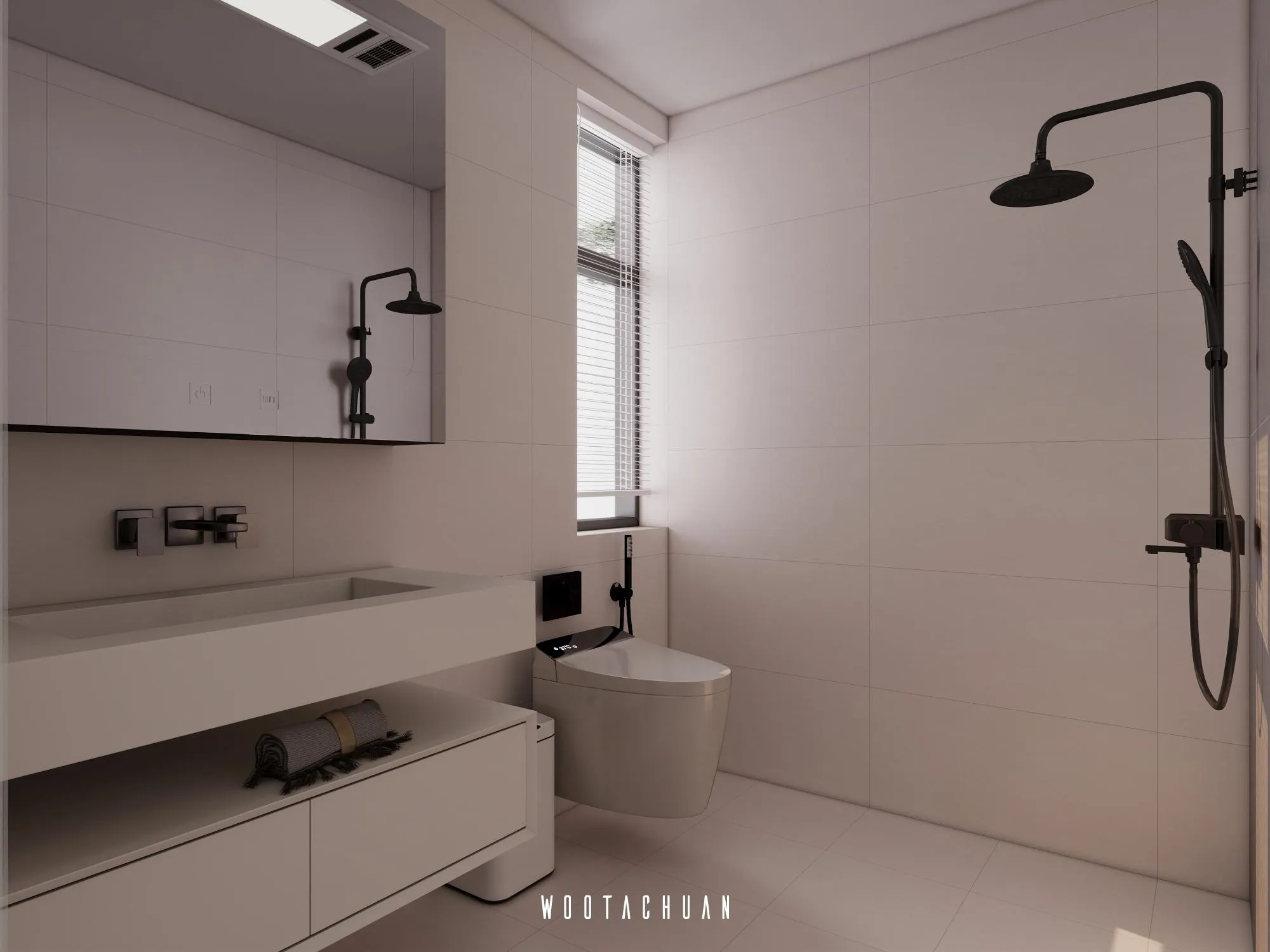 並且注重實⽤性與舒適感的結合 。 這樣的設計讓整體衛浴空間既現代⼜具放鬆的氛圍
